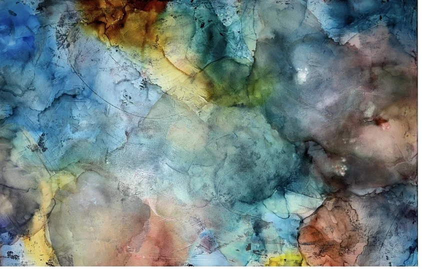 Acrylic paint, ink and resin on canvas -30w x40w inches