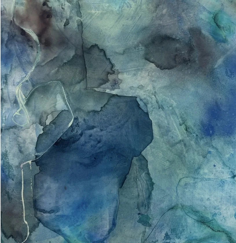 Acrylic paint, ink and resin on canvas -48w x 60h inches
